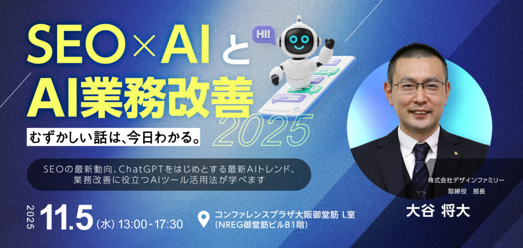 この度2025年11月5日(水)にデザインファミリー主催の、最新のSEOとAI活用をテーマにしたセミナーを開催いたします。